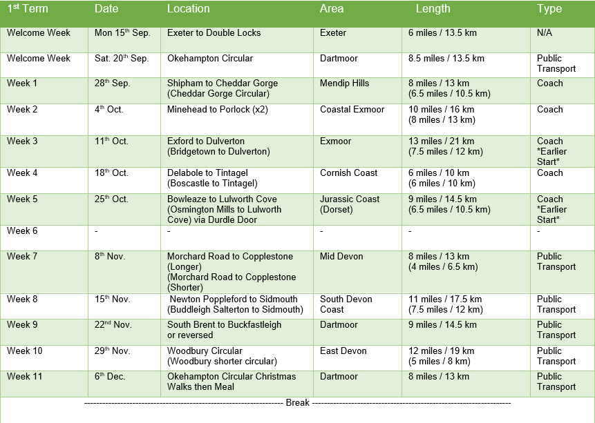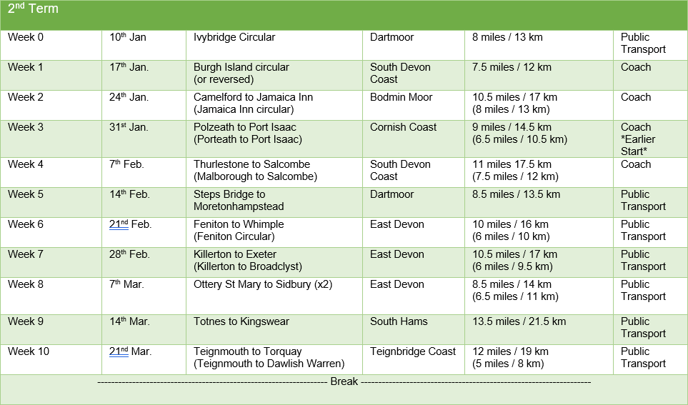 - Weekly hikes in and around the South West, typically ranging between 6 and 14 miles.