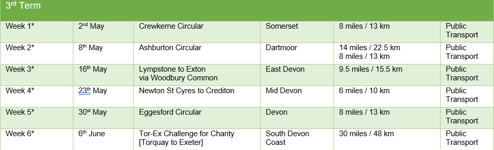 - Annual TorExe 30 mile challenge - for those who fancy an extra challenge.